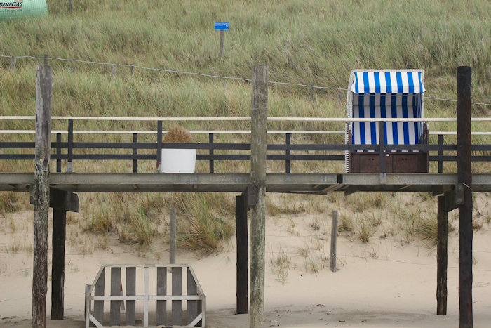 Er was eens een tijd dat het strand vol stond met strandstoelen. Die stonden doorgaans niet op een loopbrug wat dit vreemde perspectief mogelijk maakt