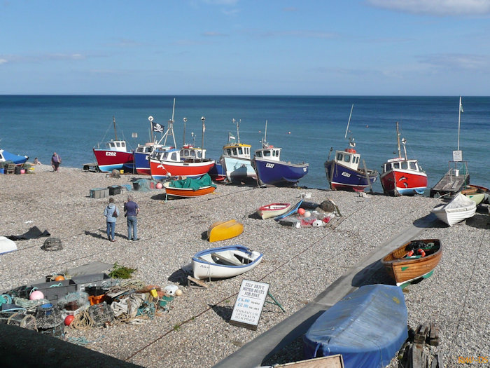 Beer, een kustplaats in Devon, waar de vissersvloot nog iedere avond op het strand getrokken wordt. Een kleurrijk en druk strand maar (bijna) zonder mensen.