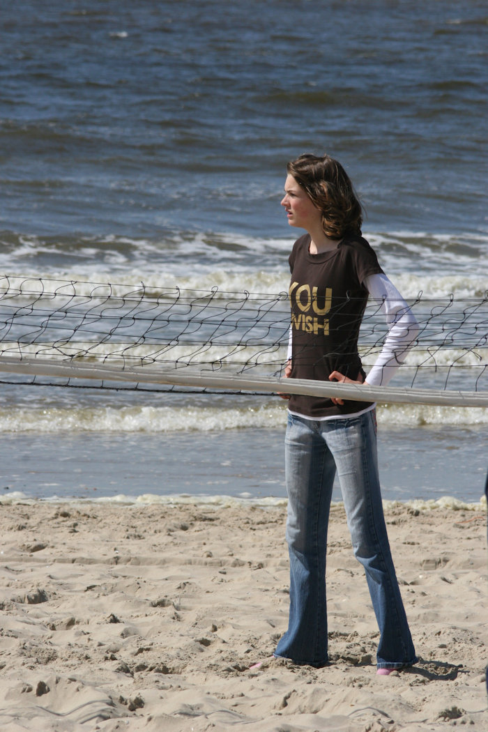 Zin in een potje volleybal? Ik zie vooral haar houding weerspiegeld in de tekst op haar shirt: Wou je me verslaan?