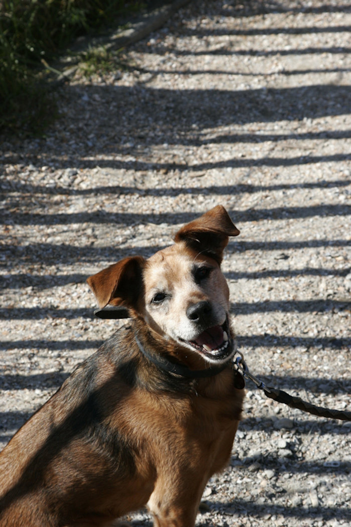 Honden zijn altijd goed om in de gaten te houden. Bij deze waren de achterpoten verdwenen in een soort pluim zodat het net lijkt of hij op twee poten loopt.